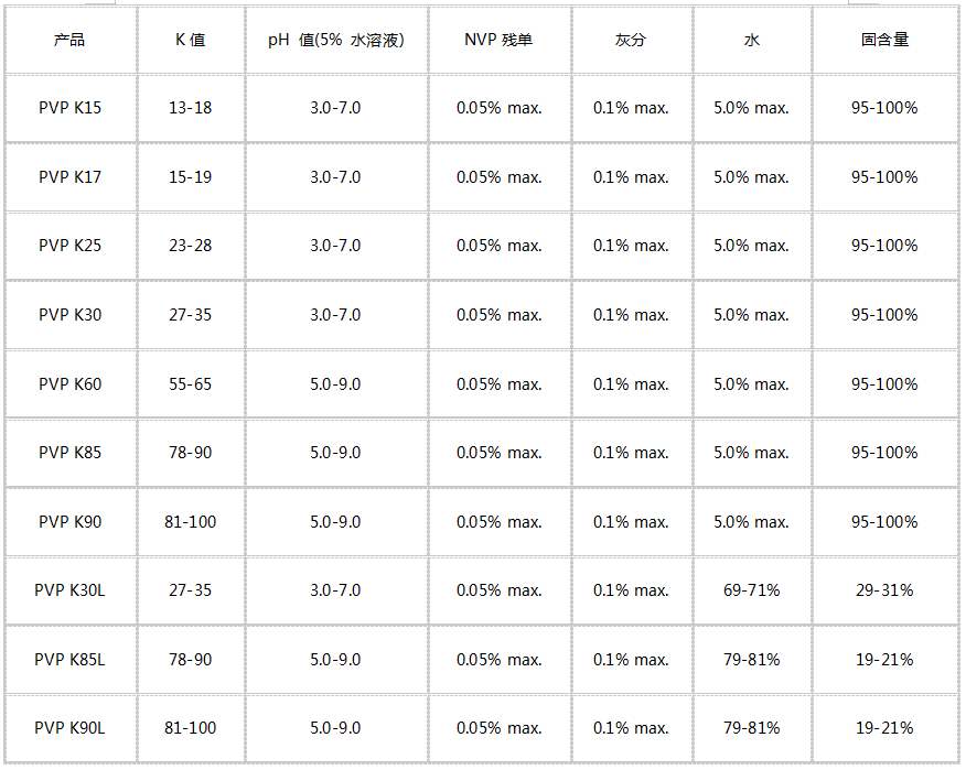 產(chǎn)品特性:工業(yè)級(jí)PVP以粉末和水溶液形式存在,易溶于水、醇及其他有機(jī)溶劑。極易吸潮,具有優(yōu)良的成模性,粘性、化學(xué)穩(wěn)定性,無毒等特性。