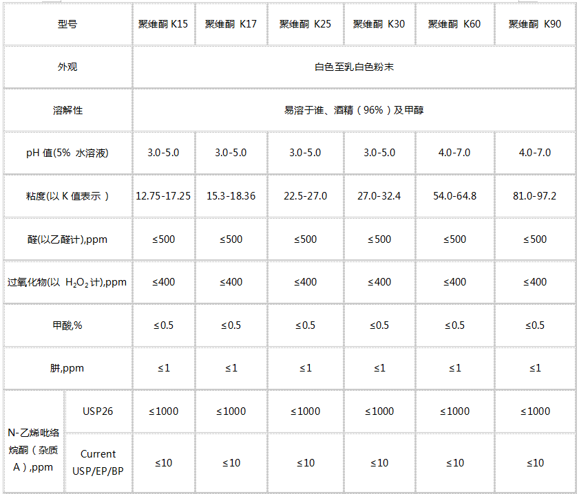產品特性:聚維酮為白色至乳白色白色粉末。易溶于水、酒精等多種有機溶劑。具有優良溶解性、成膜性、化學穩定性等。